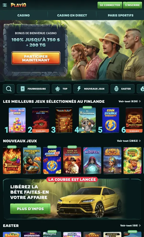 Nous avons conçu l’accès mobile pour qu’il donne l’impression d’avoir un casino complet dans la poche, pas une version au rabais. Sur PlayIo Casino, vous passez des machines à sous aux tables en direct en quelques tapotements, avec les mêmes fournisseurs et les mêmes outils de compte que sur ordinateur. Notre lobby garde aussi les sections clés faciles d’accès, comme Nouveautés, Populaires et Casino en direct.
